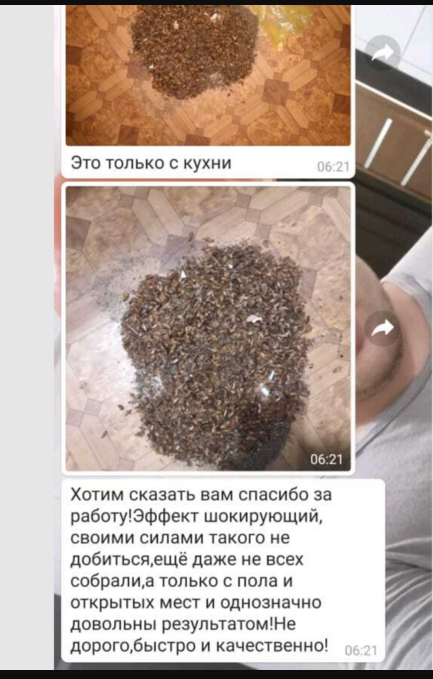 Дезинсекция занимает разное количество времени. Это зависит от площади квартиры или другого объекта, а также от популяции вредителей. В среднем, чтобы обработать однокомнатную квартиру, мы затрачиваем полтора-два часа.